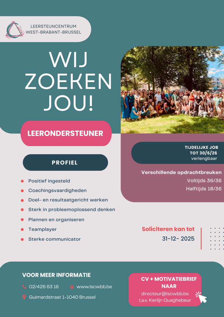 Vanaf 1 september 2023 gaat het nieuwe decreet Leersteun van kracht. De ondersteuningsnetwerken zullen hierbij omgevormd worden tot zelfstandige leersteuncentra. Net zoals nu, zullen wij ondersteuning blijven bieden voor onderwijsbehoeften type basisaanbod, 2, 3 en 9. Voor type 4, 6 en 7 zullen we structureel samenwerken met een specifiek leersteuncentrum.